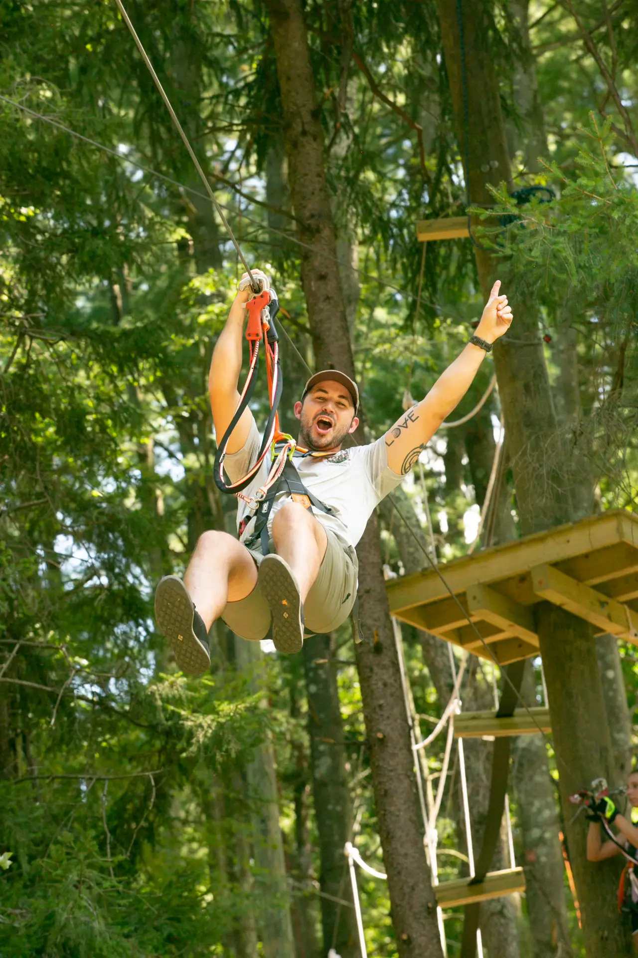 TreeTrails delivers! You’ll hear shouts of advice. You’ll witness spontaneous whooping and high fives as your group members climb, swing, race and zip through our ropes park and adventure courses. Join us at noon for a recovery meeting before we start on the course at 1pm.